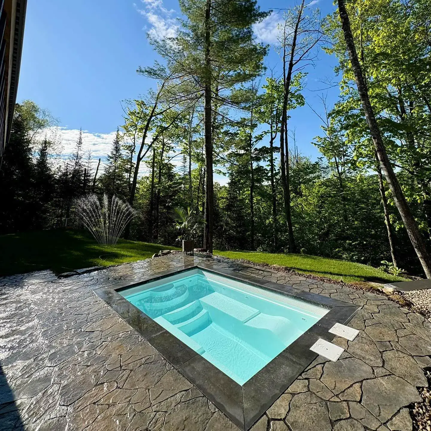 Designed for ultimate relaxation, our in-ground spas feature Hydro+ technology with integrated jets and molded seating. Engineered with the same "Plug & Play" systems as our pools, your spa is delivered directly to your backyard or jobsite. Ready when you are.