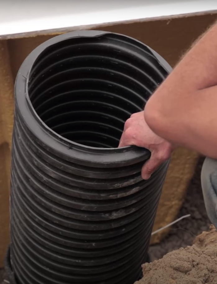 - Use the 10 inch diameter perforated drain supplied by Fibro.