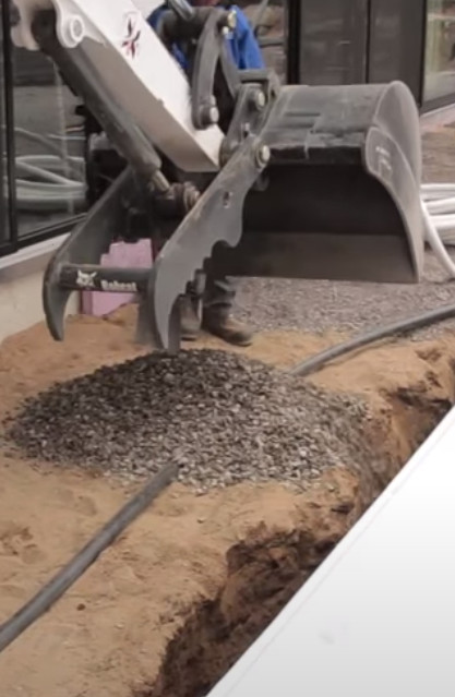 - Once the excavation is complete, lay the geotextile membrane (supplied by FIBRO) at the bottom of the hole.