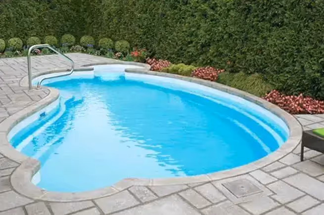 The F-18 combines a smooth kidney shape with a 6' deep end and a dedicated lounge area, creating a perfect balance between activity and relaxation. Try our fiberglass swimming pool configurator to explore the F-18 and pick the right options for your space.
