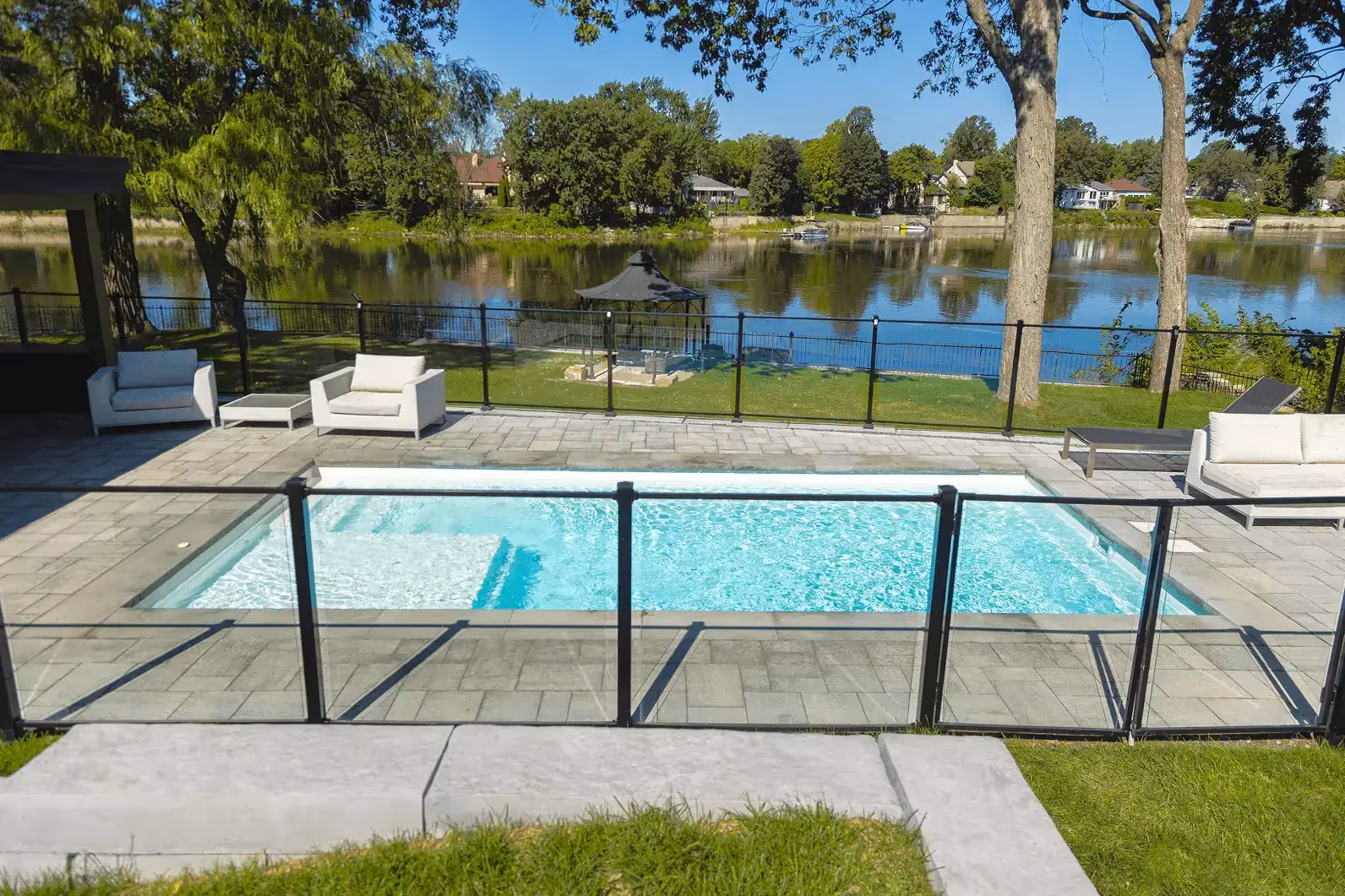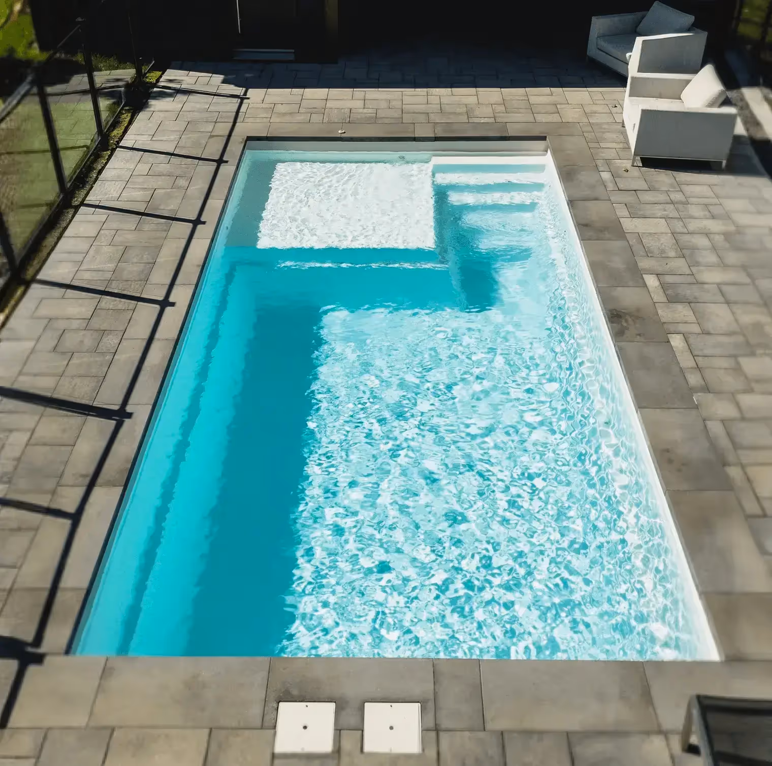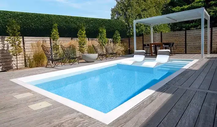 If you're looking for a high-end in-ground pool that brings a touch of luxury to your backyard, the F-28 is exactly what you need. Our deck reinforced with a solid box offers easy installation and more solidity. With its elegant tanning ledge, allowing you to install two sun loungers, you can relax comfortably, enjoy the sun while enjoying the freshness of the water.