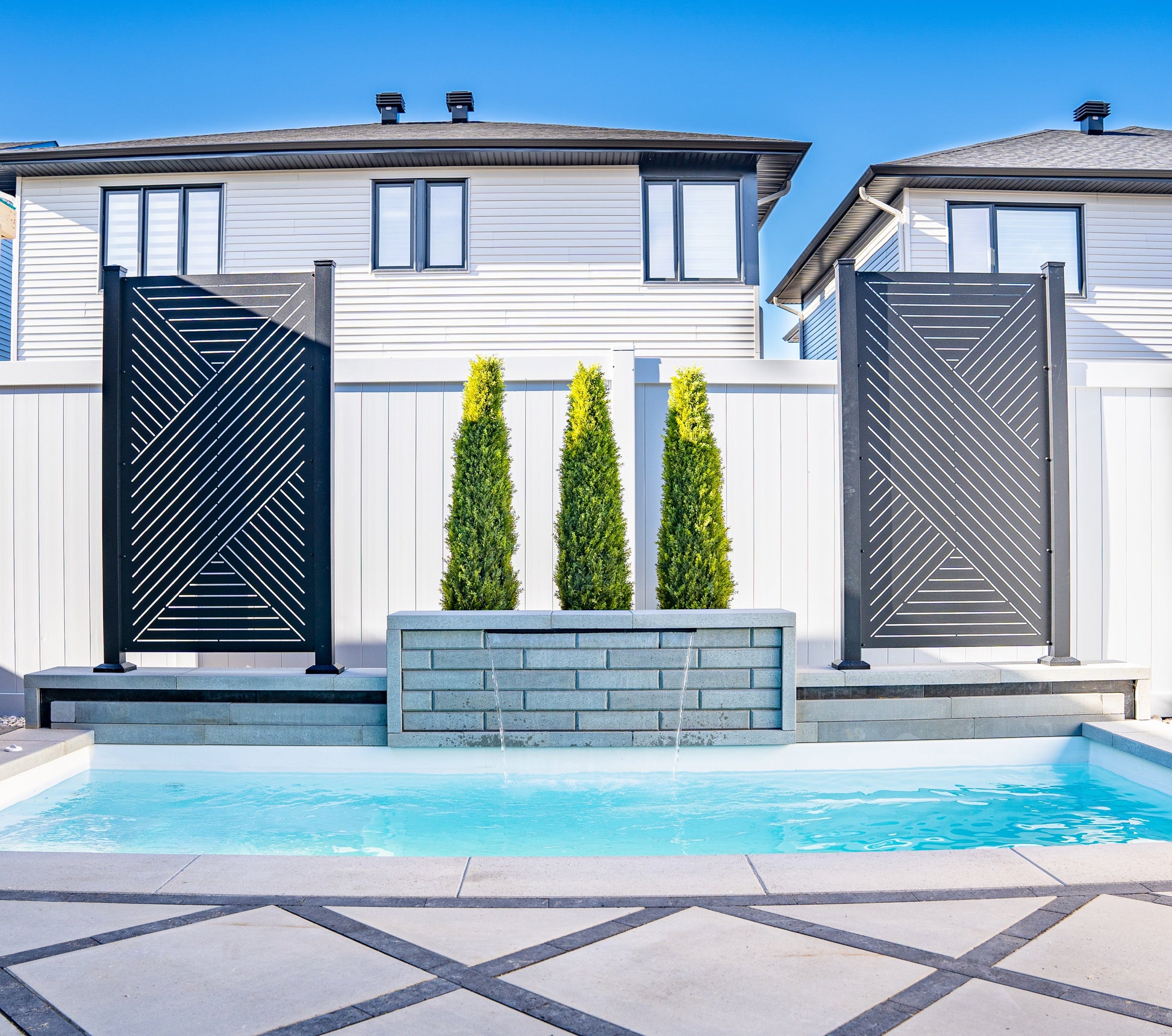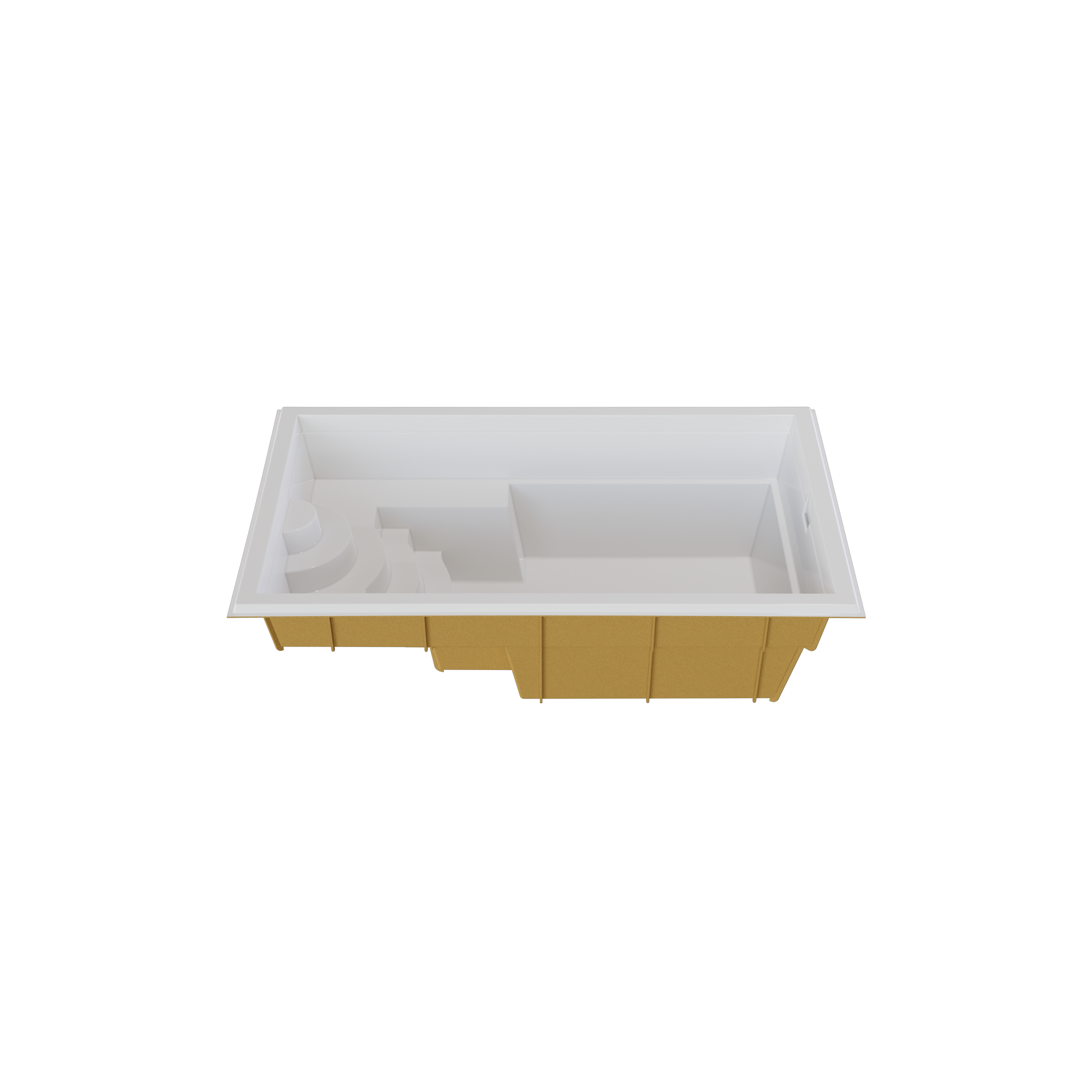 Urban and sophisticated look, this is what offers you this model of swimming pool that bears its name well. Its straight lines and clean shape allow it a maximized swimming area, in addition to a relaxation area offering benches and whirlpool jets.